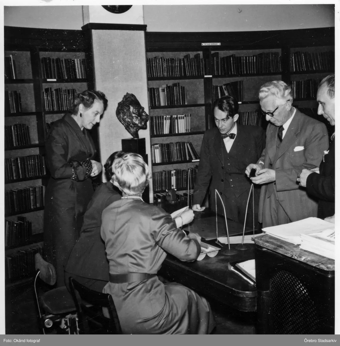 Mötesdeltagare på Örebro Stadsbibliotek på Fabriksgatan, 1940-tal