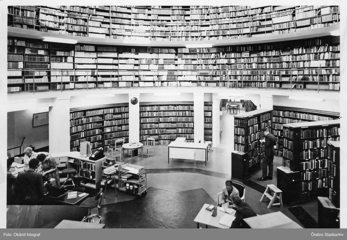 Utlåningshallen på Örebro Stadsbibliotek på Fabriksgatan, 1960 ca