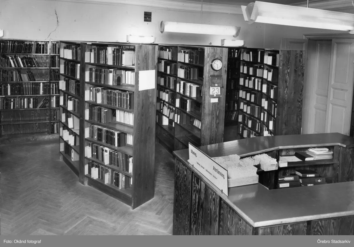 Utlåningsdisk på Linde Folkbibliotek i Lindesberg, 1955