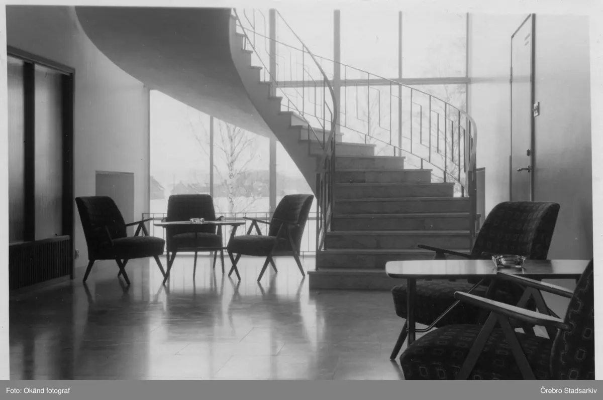 Läshörnor och trappa i Viby Folkbibliotek i Vretstorp, 1950-tal