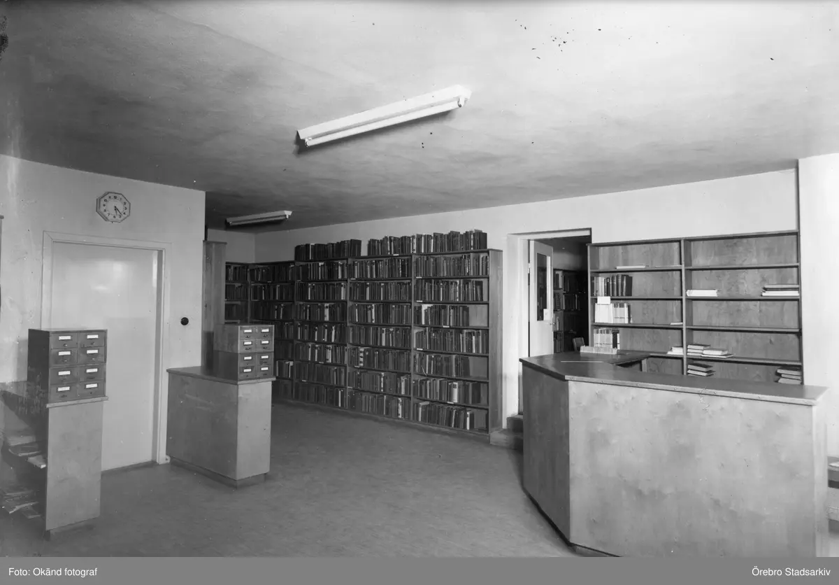 Utlåningsdisk och bokkatalogen i ABF-Biblioteket i Hallsberg, 1955