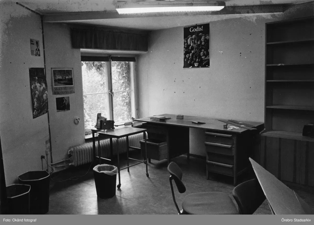 Urplockat arbetsrum på Örebro Stadsbibliotek på Fabriksgatan, 1981