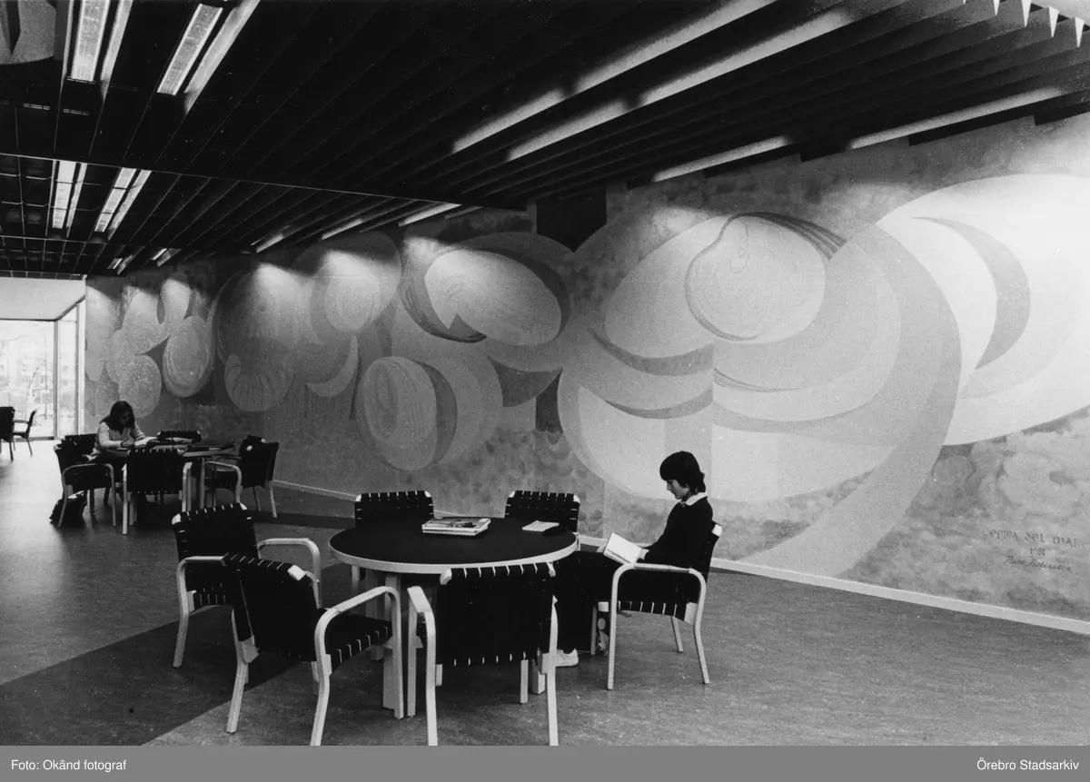 Läsesal på Örebro Stadsbibliotek på Näbbtorgsgatan, 1981