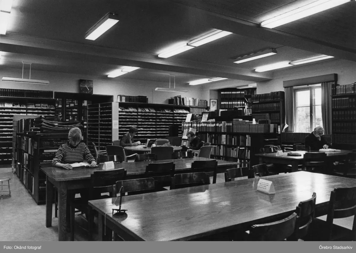 Titel: Läsesalen på Örebro Stadsbibliotek på Fabriksgatan, 1970-tal