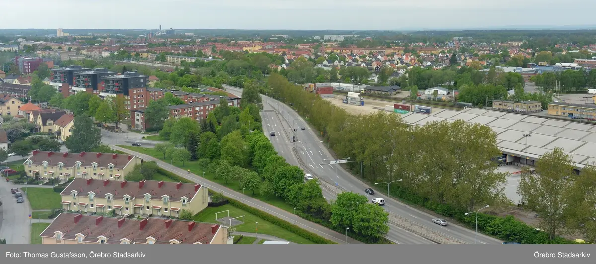 Vy över Norra infarten, Mannatorpsterminalen och Holmen, 2016-05-20