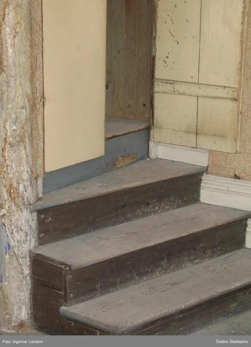 Tre trappsteg till dörren mot övervåningen på Bondsätters gård, 2006-08-17