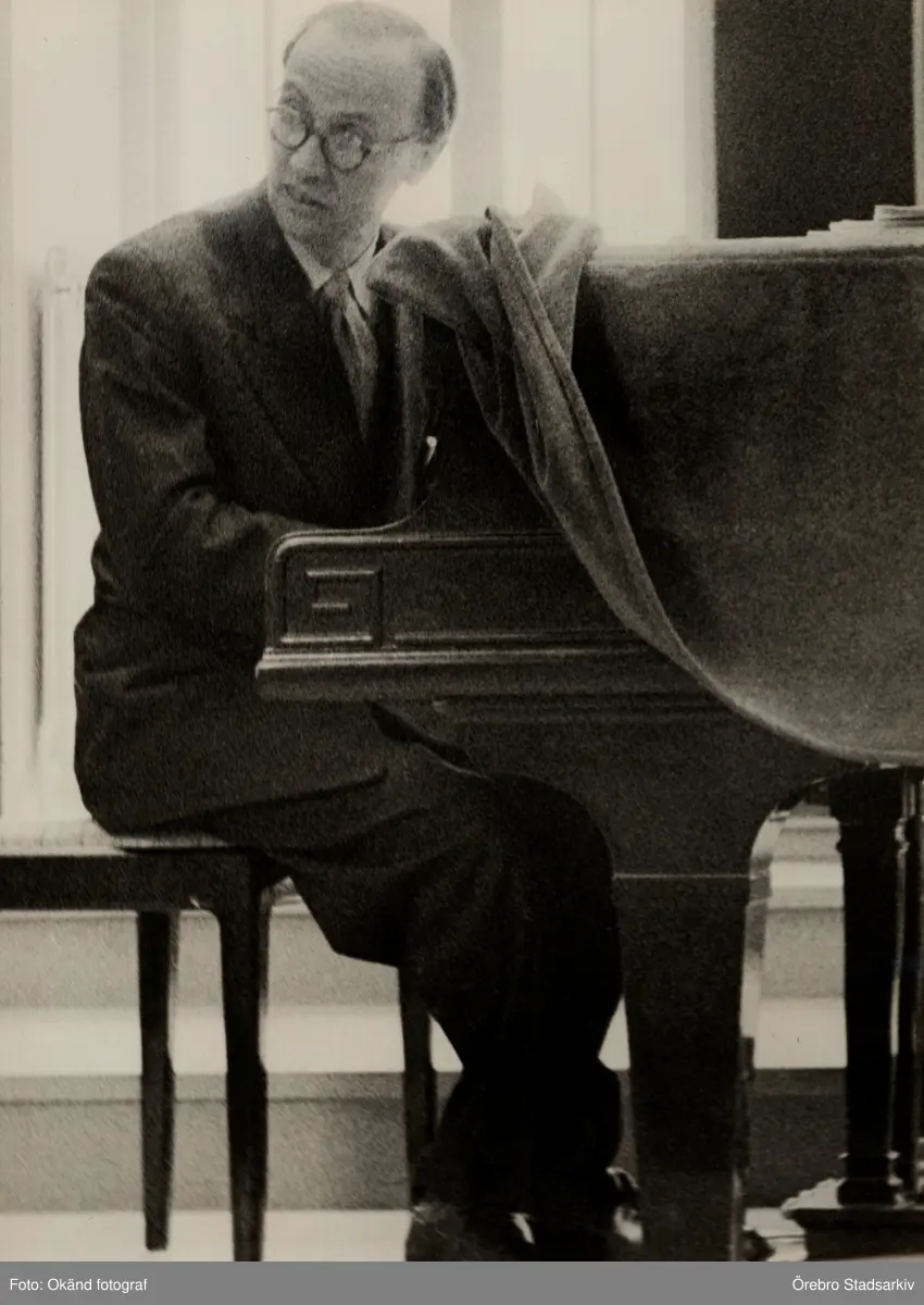 Musiklärare vid pianot på Karolinska skolan, 1956