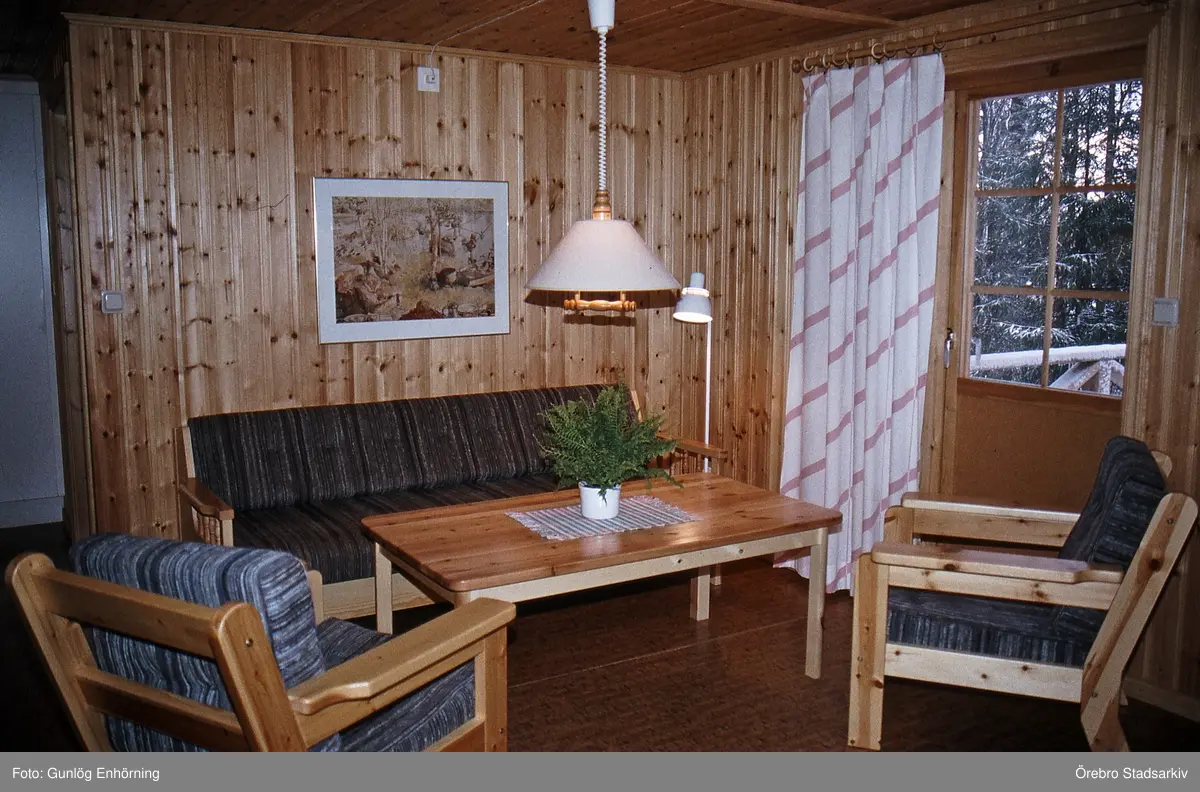 Soffgrupp inne i en stuga i Ånnaboda, 1993