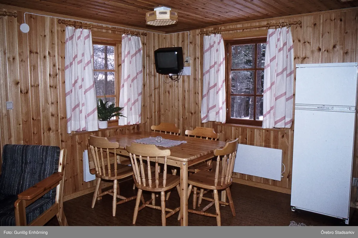 Matbord inne i en stuga i Ånnaboda, 1993