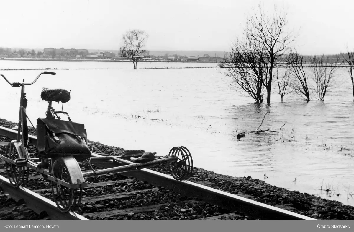 Dressin vid översvämning vid järnväg i Sannahed, 1969