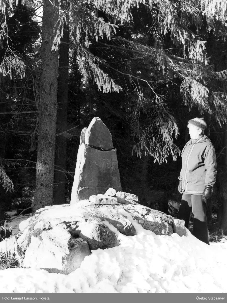 Kvinna vid milsten vid Ramundeboda i Laxå, 1976