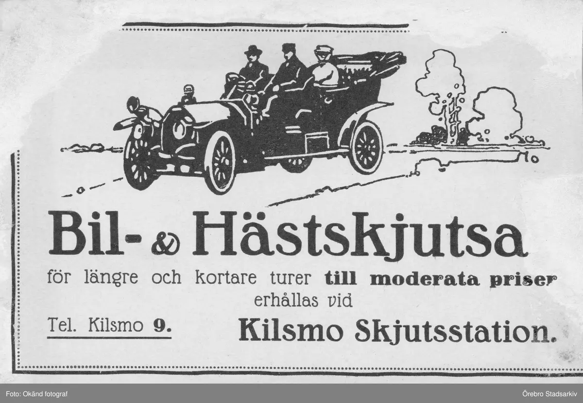 Reklamskylt för Kilsmo skjutsstation, 1930-tal