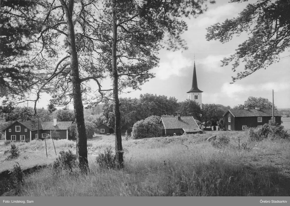 Vy mot Hovsta kyrka och gamla ålderdomshemmet, 1930-tal