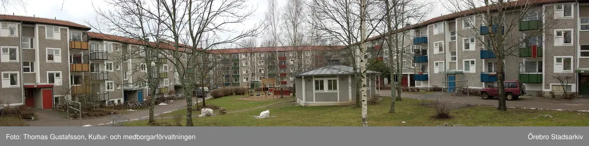 Panoramabild på innergård i Baronbackarna, 2008-04-12