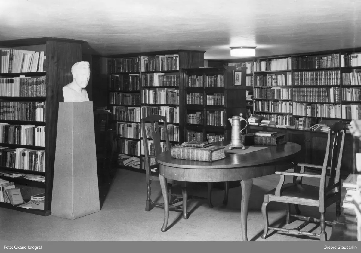 Byst i Birger Mörnersamlingen på Örebro Stadsbibliotek på Fabriksgatan, ca 1950