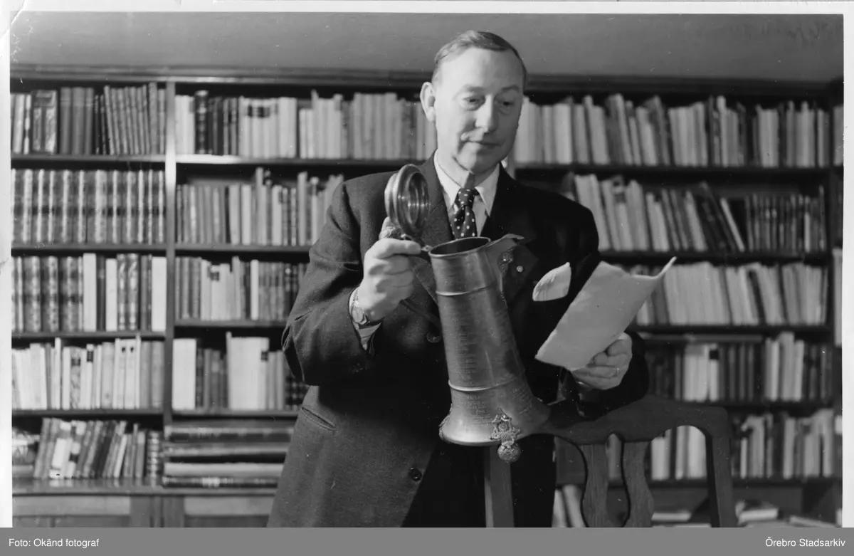 Centralbibliotikarien visar ölstånka på Örebro Stadsbibliotek på Fabriksgatan, 1950
