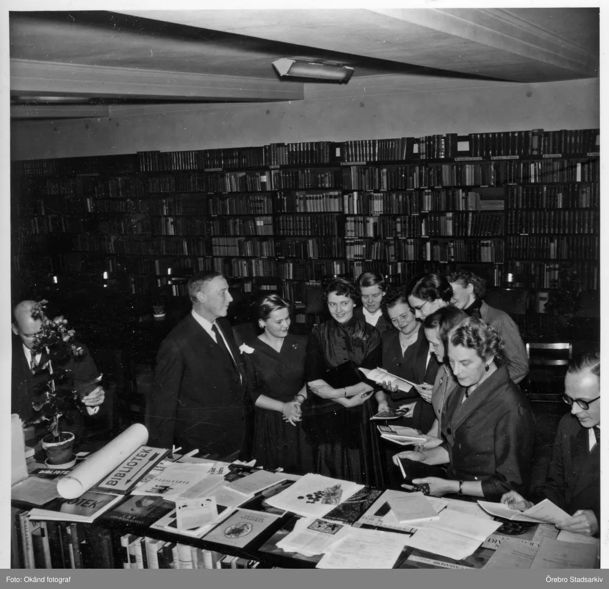 Mötesdeltagare på på Örebro Stadsbibliotek på Fabriksgatan, 1940-tal