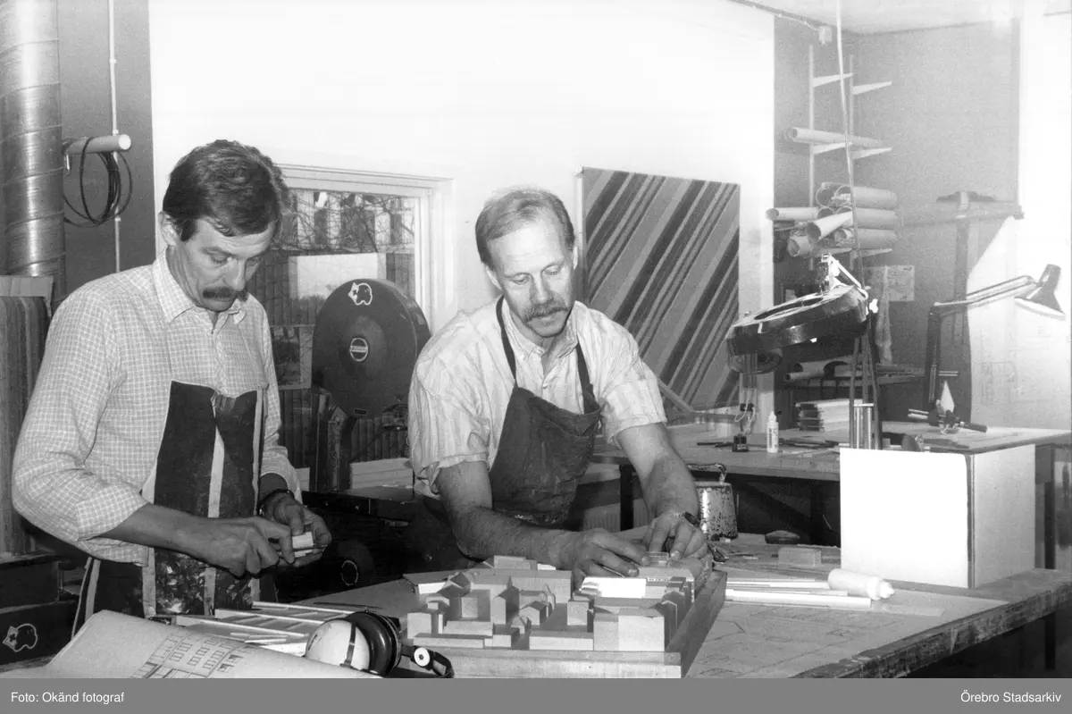 Modelltekniker i arbete på kommunens modellverkstad, 1989