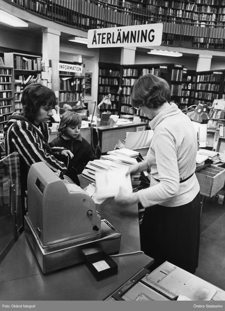 Disken för återlämning på Örebro Stadsbibliotek på Fabriksgatan, 1970-tal