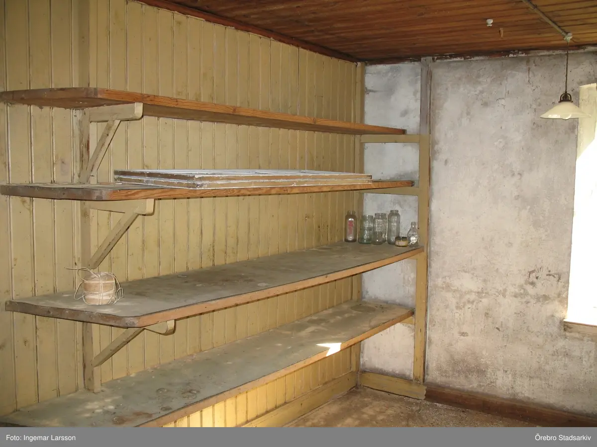 Hyllor inne i skafferi på Bondsätters gård, 2006-08-17