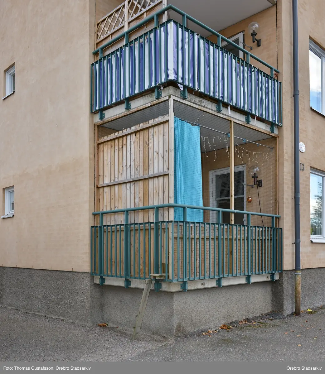 Inhägnad balkong på Loggatan 13. 2016-10-07