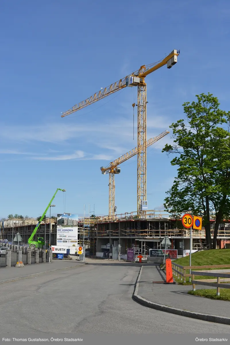 Byggkranar vid Pionjärgatan 6, 2016-05-17