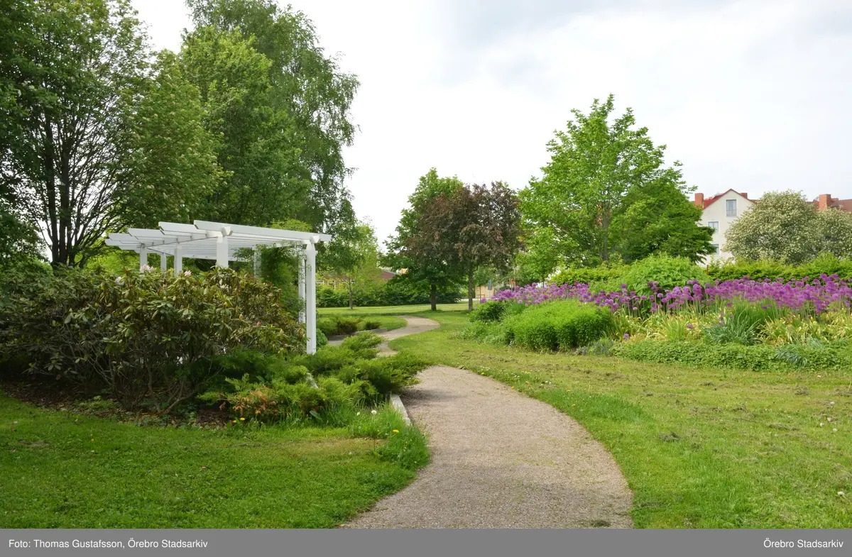 Plantering och pergola i Västra Rostaparken, 2016-06-01