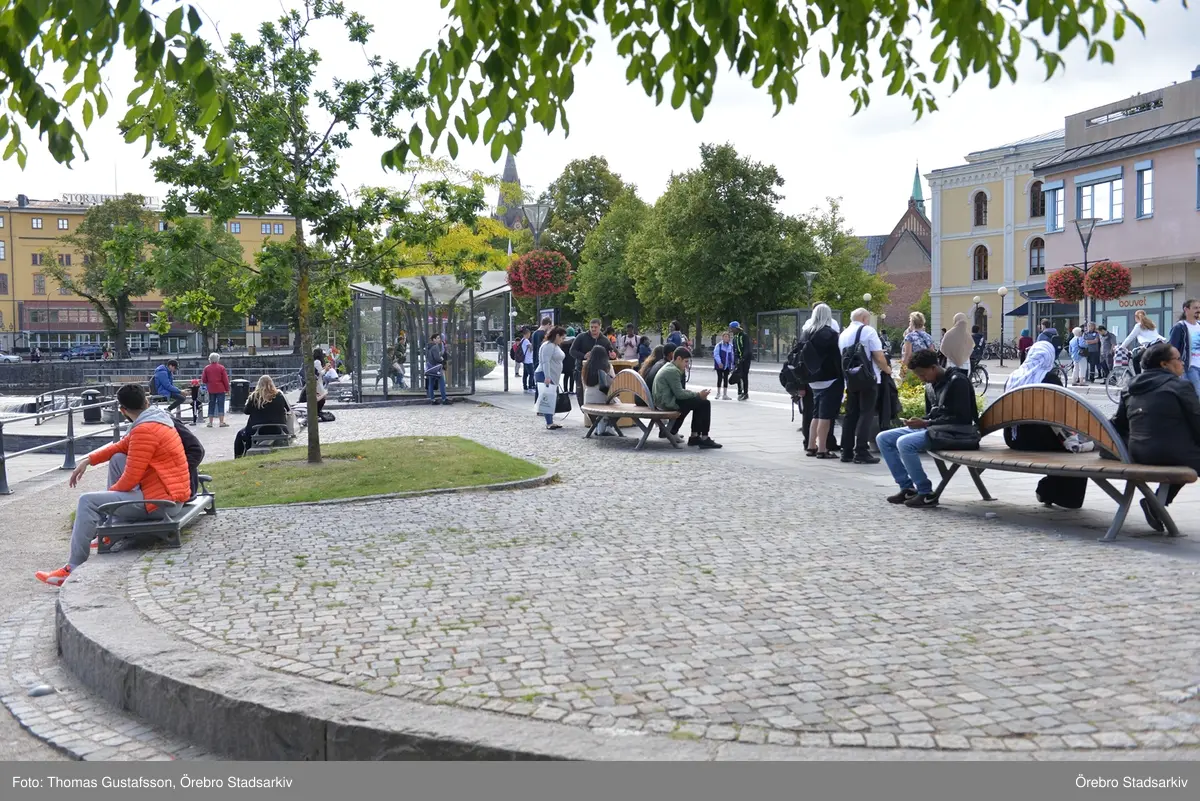 Vänt- samlingsplats vid Storbron, Storgatan, 2016-09-02