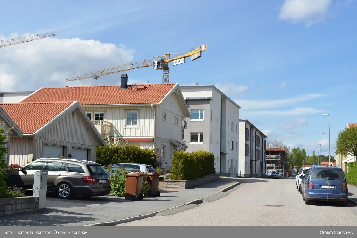 Bostadshus och byggkranar i Rynninge, 2016-05-17