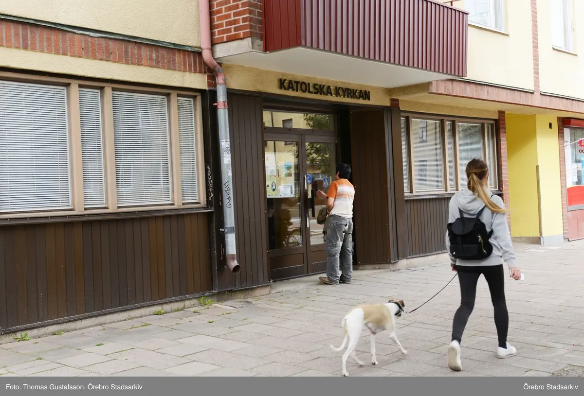 Bakre ingång till Katolska kyrkan, Järnvägsgatan 17, 2016-09-02