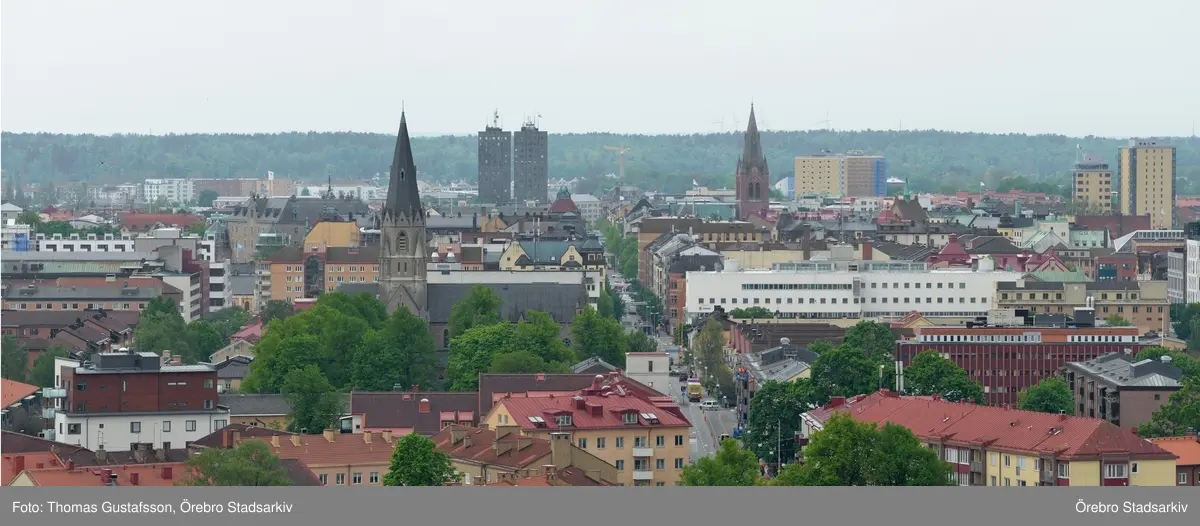 Vy över Örebros centrala delar, Storgatan, 2016-05-20