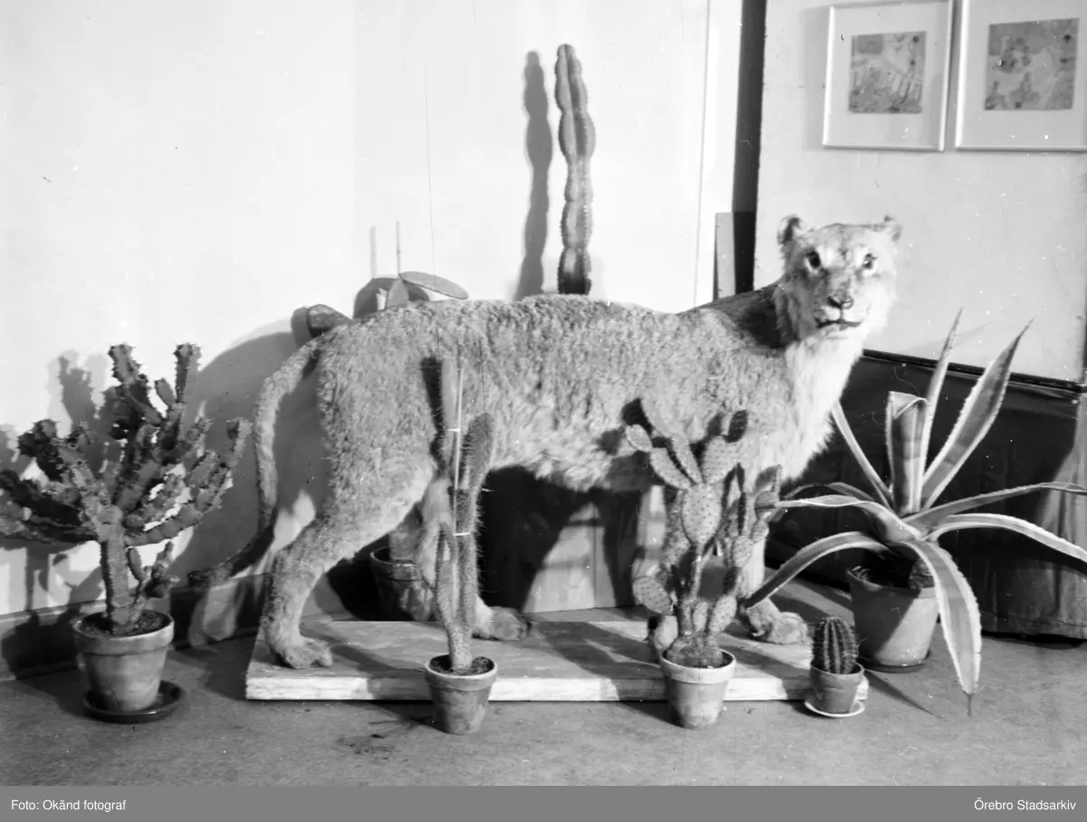 Uppstoppat kattdjur på etnografisk utställning, januari 1952