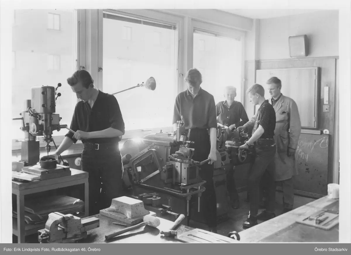 Pojkar har metallslöjd på Holmens skola, 1960-1961