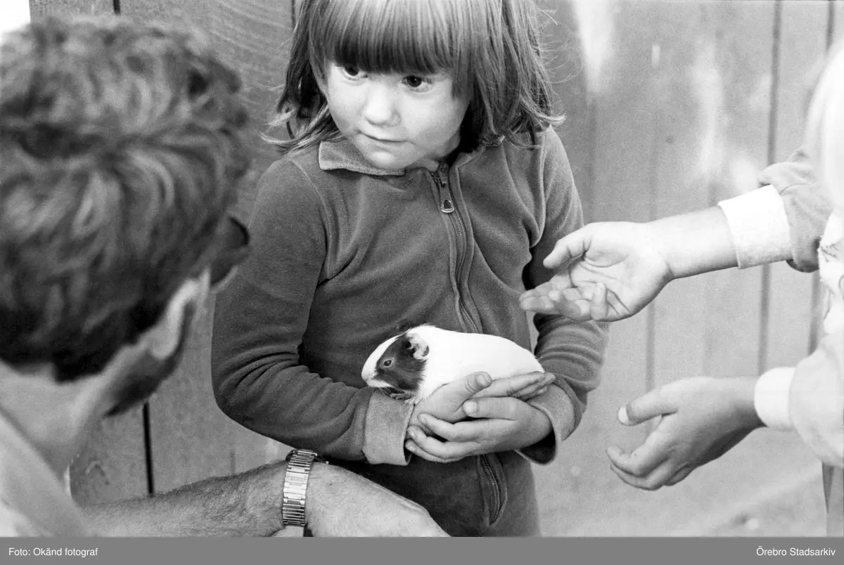 Flicka med marsvin i kommunens djurpark på Stora Holmen, 1988