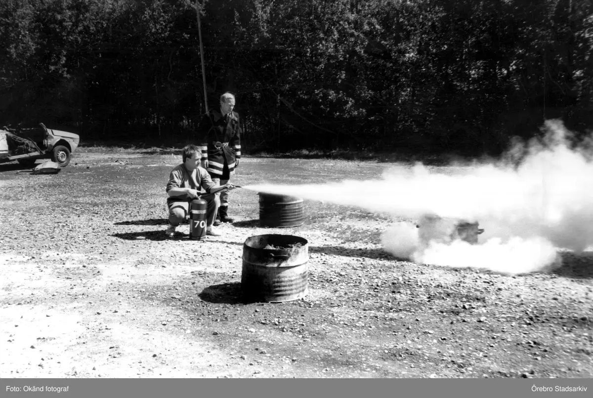Användning av brandsläckare vid kurs i brandförsvar, 1989