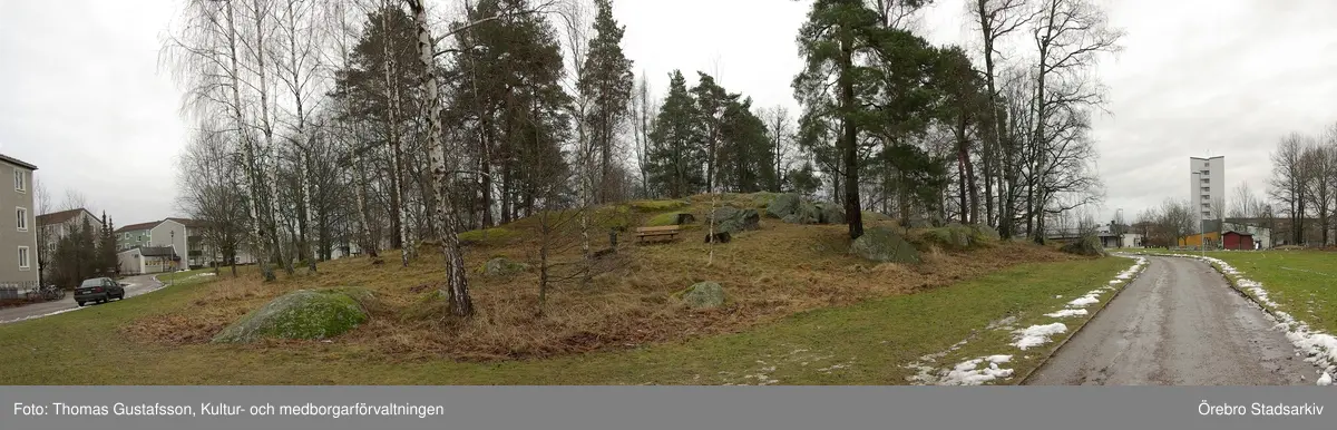 Panoramabild över gravkullen i Baronbackarna, 2008-04-12