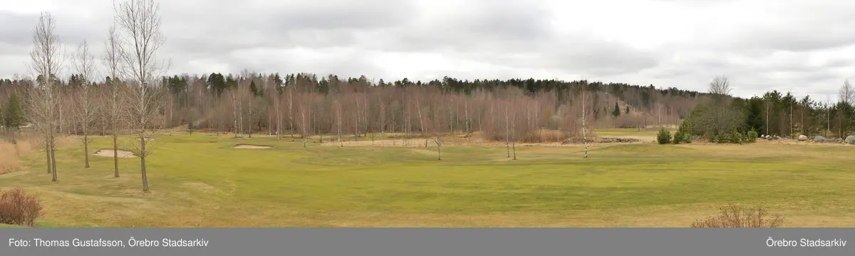 Vy över Örebro frisbeegolfbana vid Åstadalsvägen, 2016-04-04
