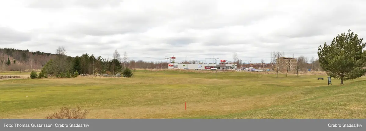 Vy över Örebro frisbeegolfbana, Åstadalsvägen, 2016-04-04