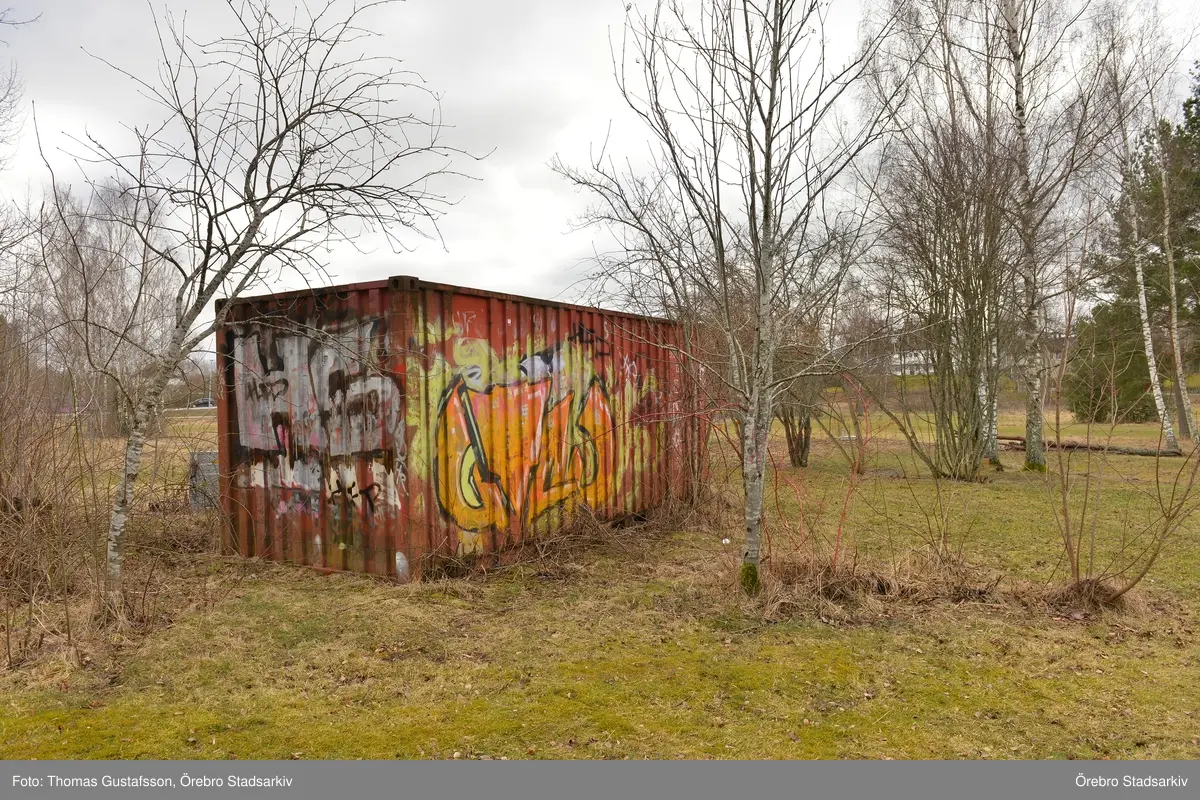 Nedklottrad container vid Åstadalsvägen, 2016-04-04