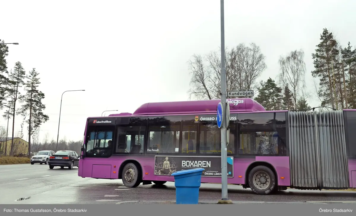 Buss på Kundvägen i Mariebergs köpcentrum, 2016-05-04