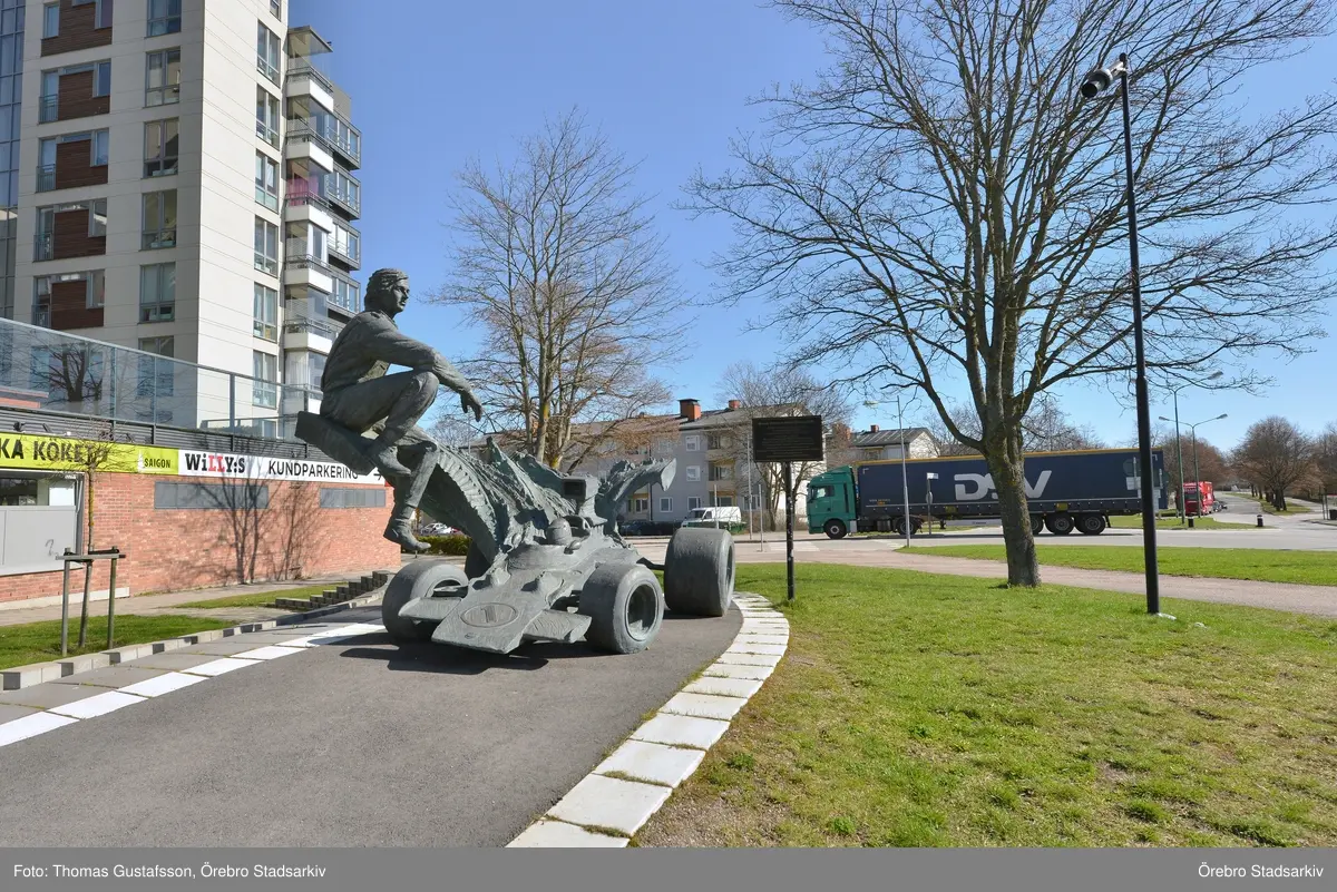 Statyn Ronnie Peterson på Almbyplan, Rudbecksgatan 26, 2016-04-11