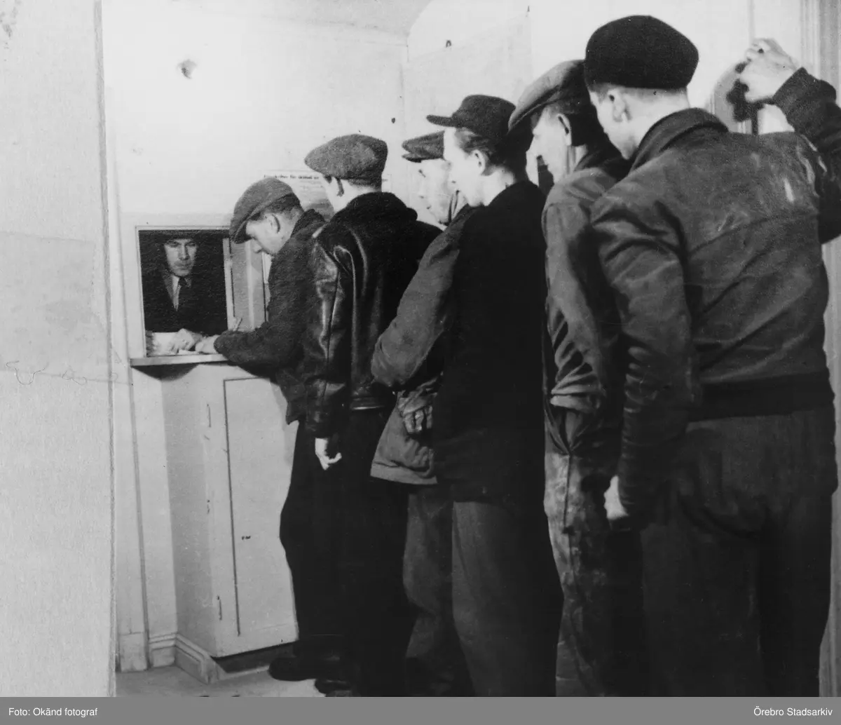 Avlöningsdags vid gamla Verkmästarkontoret, 1940-tal
