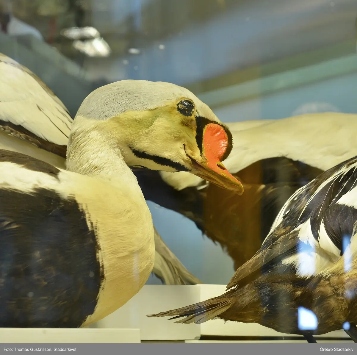 Uppstoppad praktejder på Biologiska museet, 2014-04-28