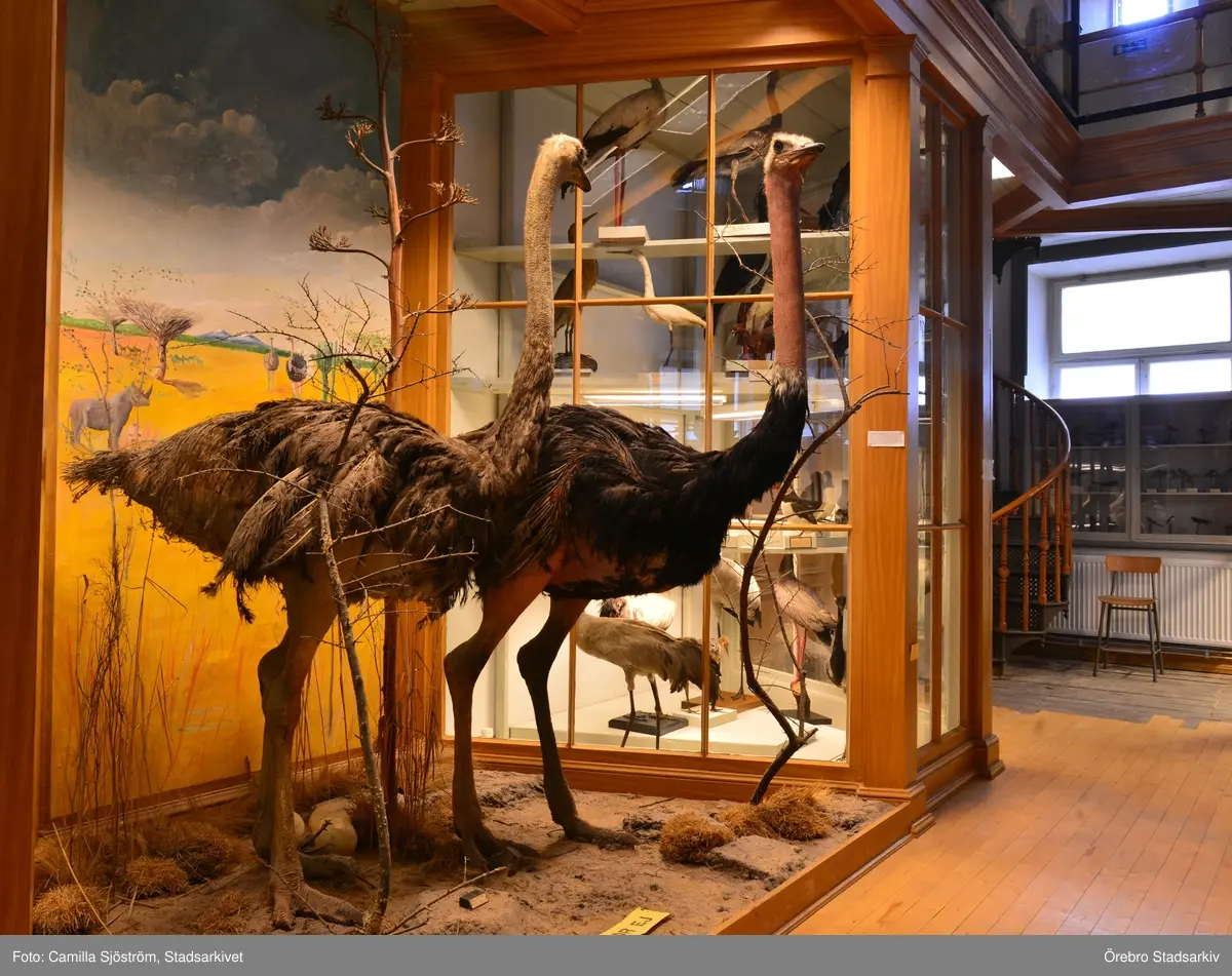 Uppstoppade strutsar på Biologiska museet, 2014-04-28