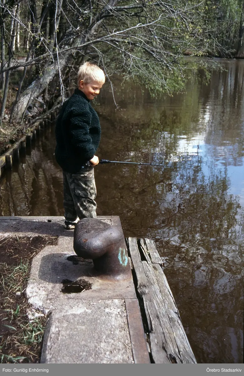 Pojke som fiskar vid vattenparken, 1997