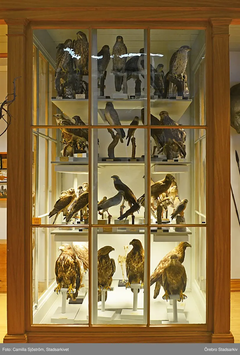 Rovfåglar i monter på Biologiska museet, 2014-04-28