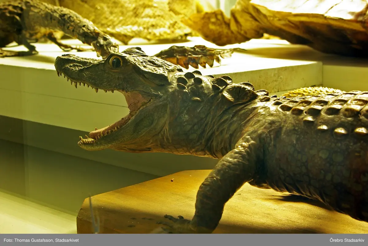 Alligator i monter på Biologiska museet, 2014-04-28