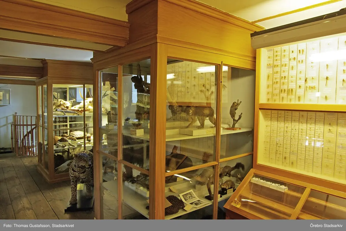 Uppstoppade djur i montrar på Biologiska museet, 2014-04-28