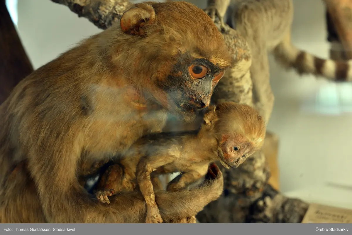 Apa med unge på Biologiska museet, 2014-04-28