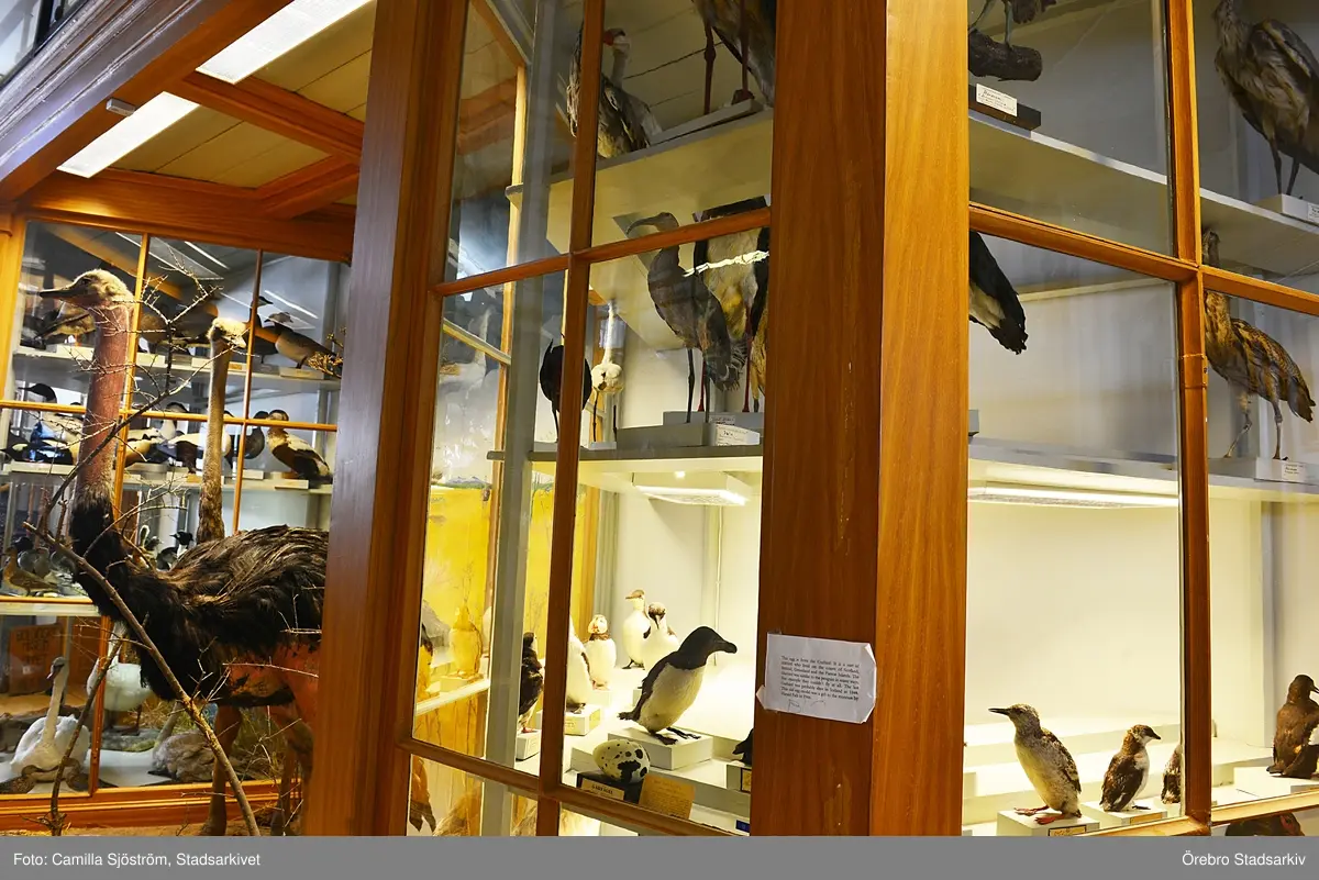 Uppstoppade fåglar i monter på Biologiska museet, 2014-04-28